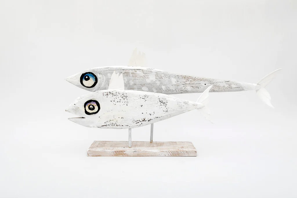 «La Pareja Enamorada» es una obra minimalista que utiliza la metáfora de dos peces compartiendo una misma base para simbolizar la unidad en la diversidad. Elaborada con madera reciclada recuperada, esta escultura de mesa es la solución definitiva para quienes buscan un regalo de boda o aniversario con significado profundo y diseño exclusivo.